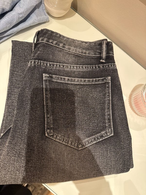 Gráar straight leg gallabuxur