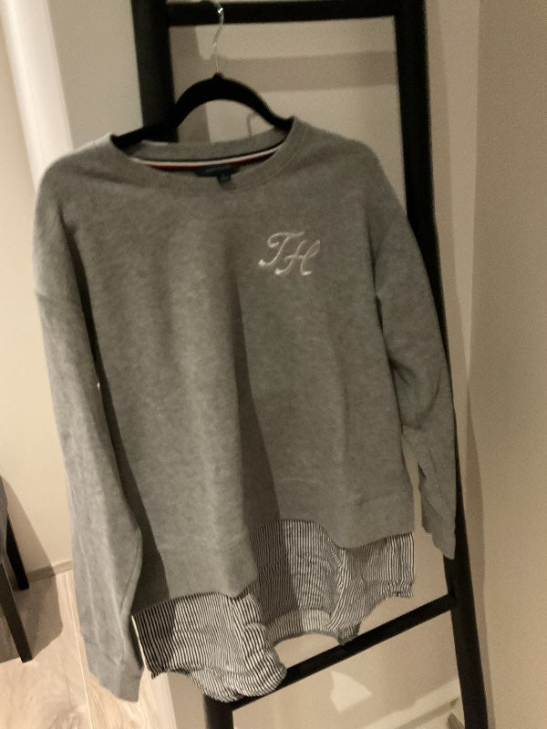 Tommy grá peysa með skyrtu